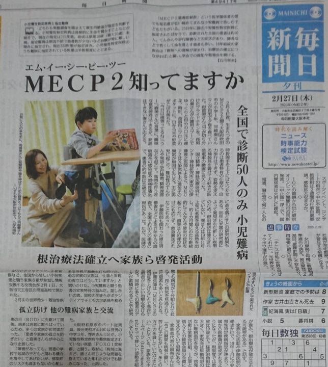 昨今の事情を考えると、掲載見送りを重ねても1面にこんなに大きく掲載して下さった記者さんの想いを感じます。そして、こんな状況下で1面トップに掲載してくれた毎日新聞社に心から感謝します。