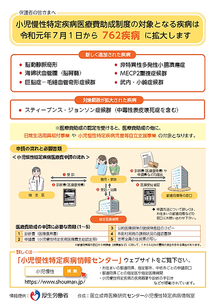 【7月から小児慢性特定疾病医療費助成の対象を、762疾病まで拡大しました】