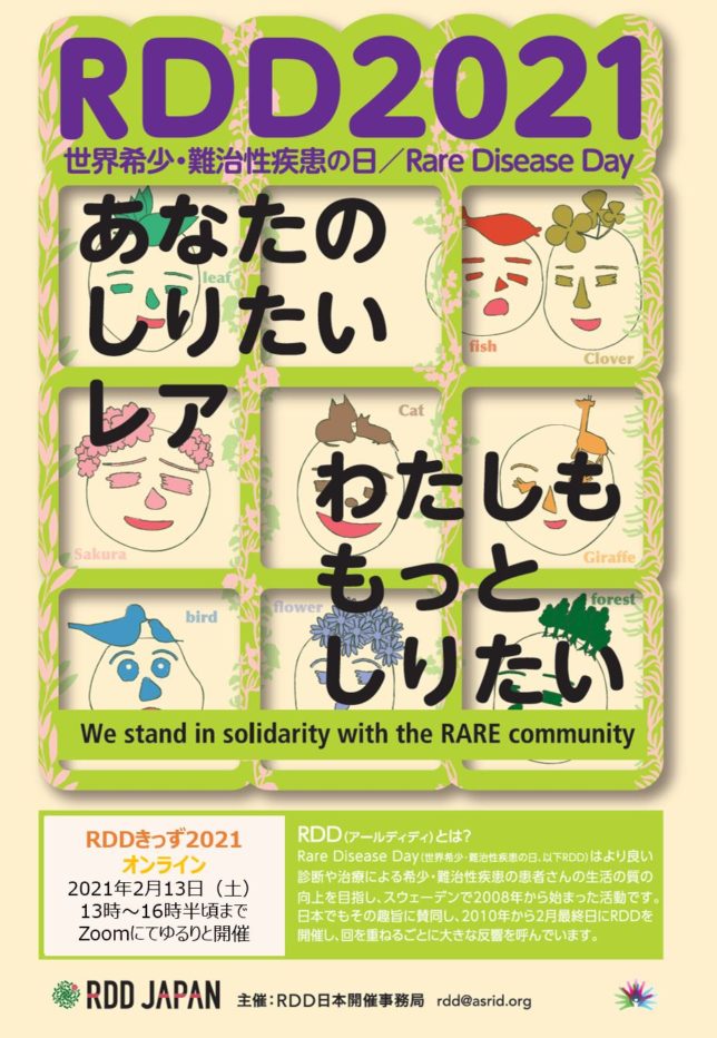 RDDきっずの特徴は、ふだん希少疾患や難病と関わることのない学生さんたちに実際に子どもたちや家族の日常に触れてもらうことです。ただ、今年は感染症対策の観点からオンライン開催になりました。それでも、私たち患者家族の日常に少しでも触れてもらえるようにオンラインでも密な時間を過ごせるように計画中です。